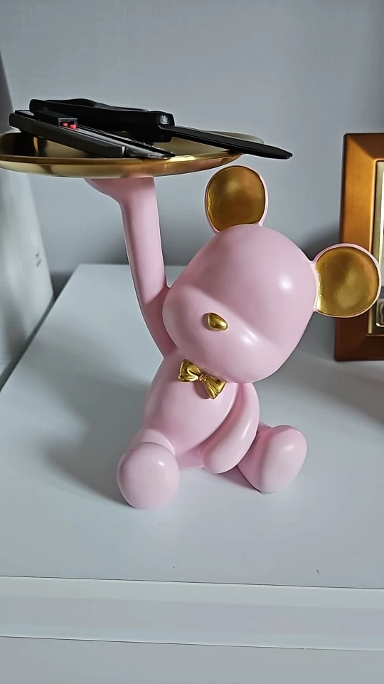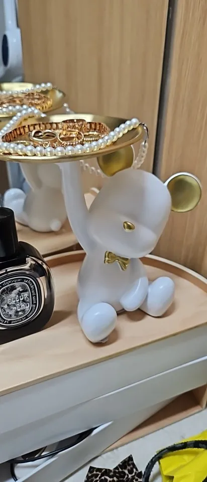Crafted from high-quality resin, the bear statue adds a touch of whimsy to any room, making it perfect for bookshelves, entryways, or vanities. Whether you use it to store keys, jewelry, or lipsticks, this decorative tray is sure to delight both children and adults alike.